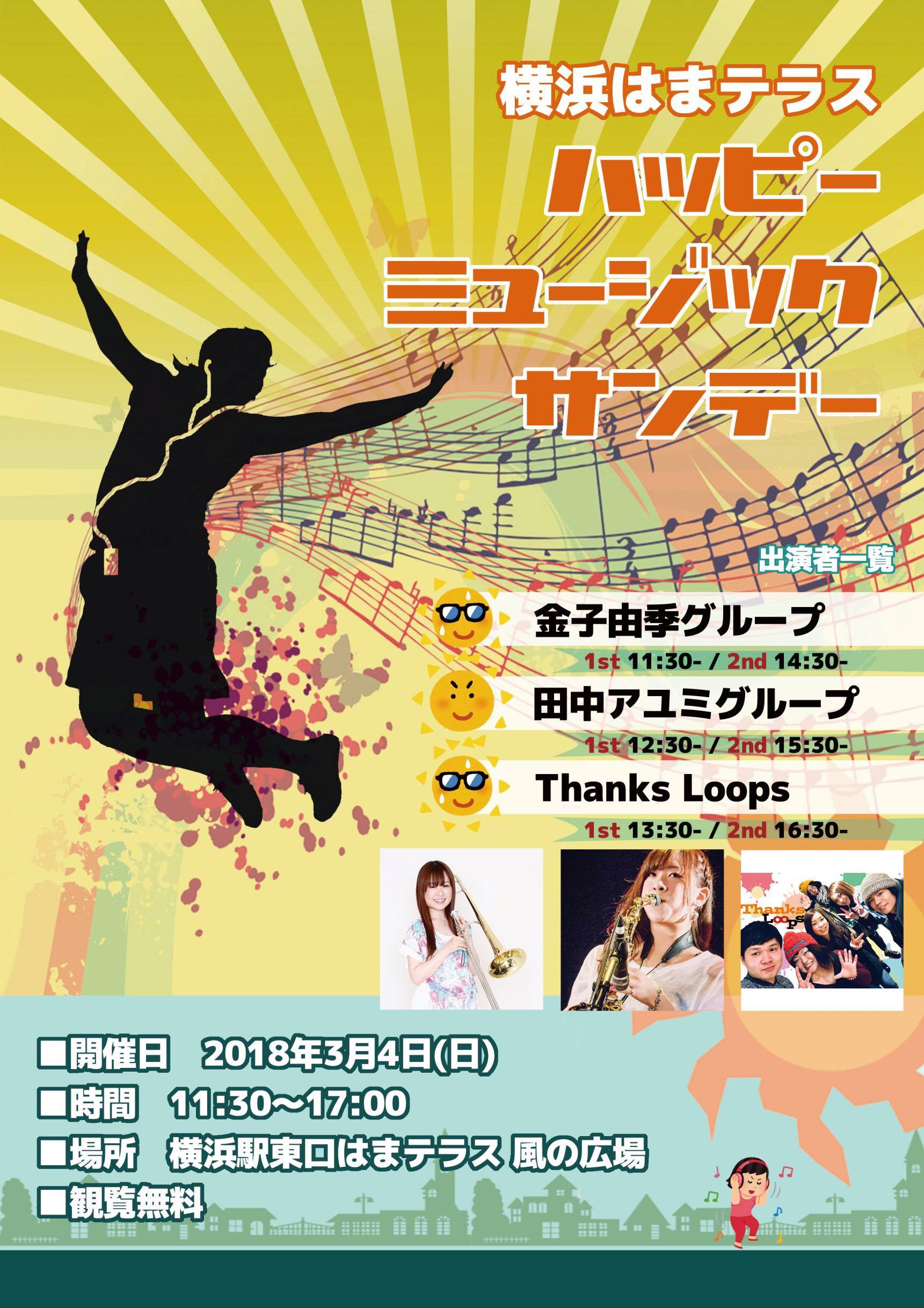 3月4日(日)11:30〜はまテラスにてハッピー・ミュージックサンデーを開催いたします!