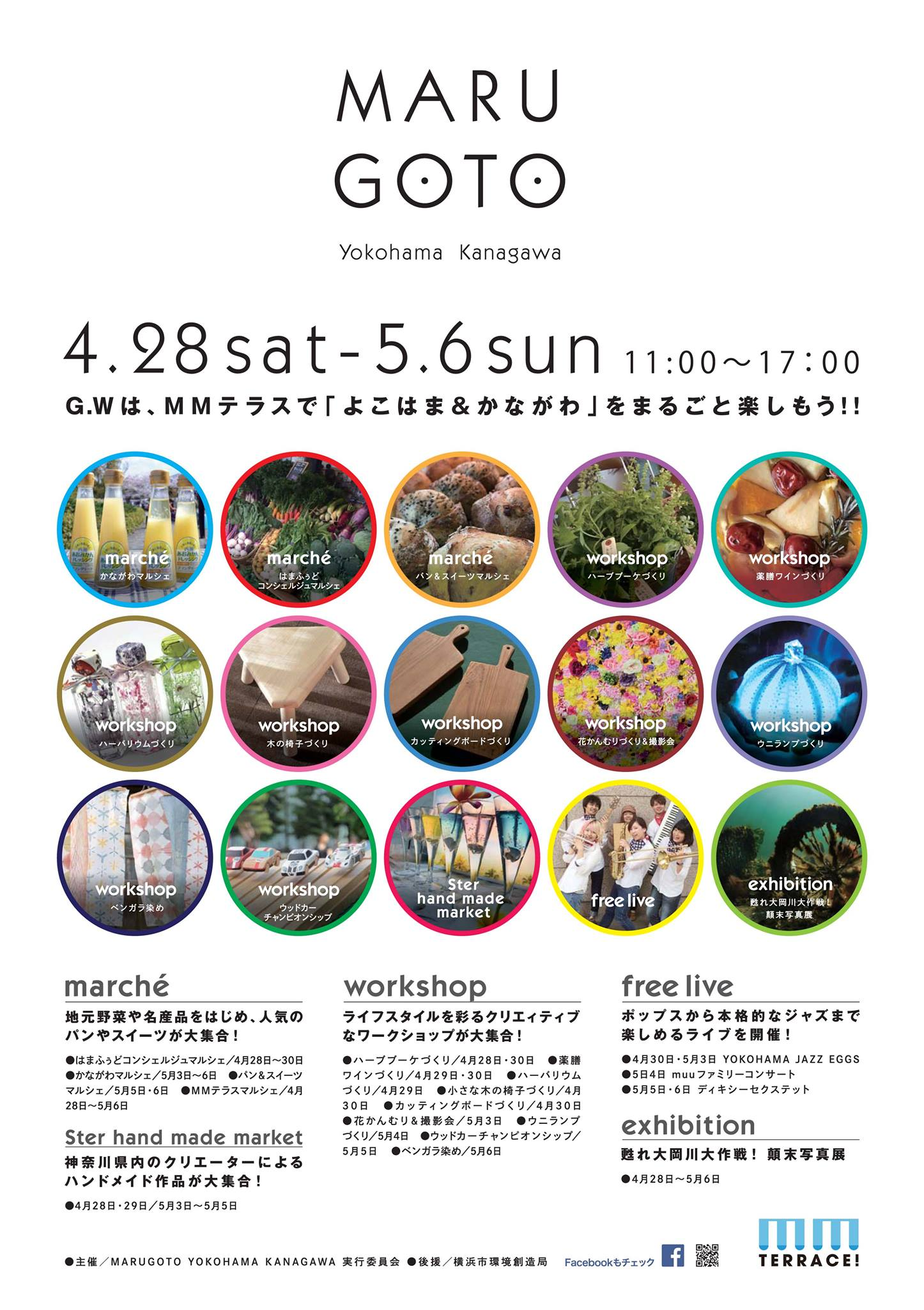 連休期間中のMMテラスマルシェは、Marugoto yokohama kanagawaに参加! 詳しくは、下のポスターイメージをご参照くださいませ。各イベントの内容はfacebookページhttps://www.facebook.com/Maruyokohamakanagawa/で、チェックできますよ!