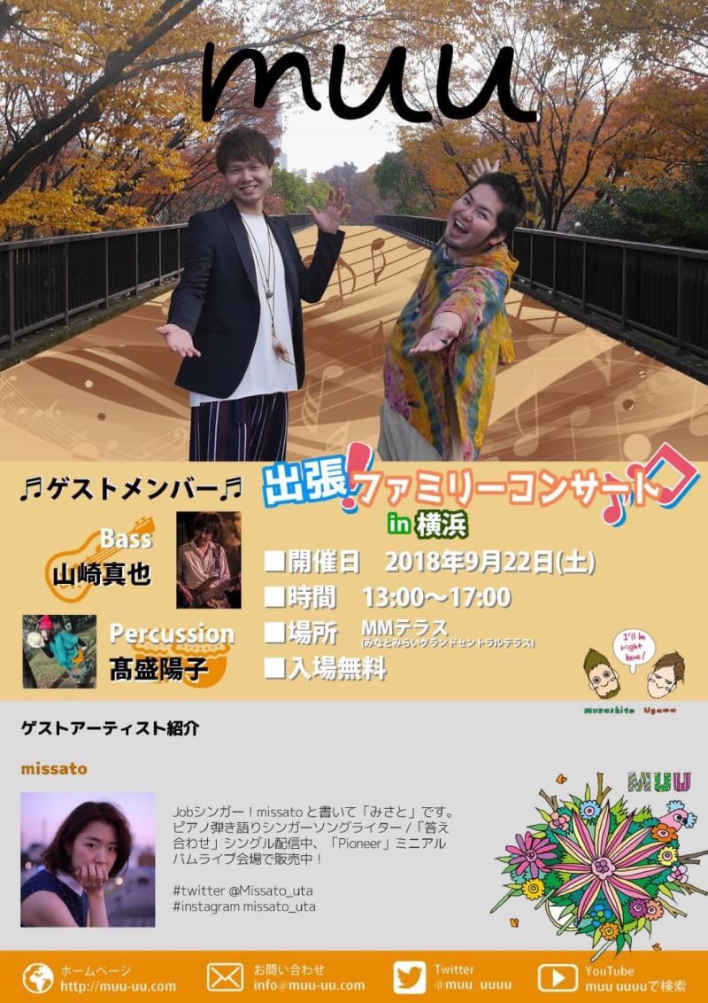 9月22日(土)「muu出張ファミリーコンサートin横浜」ライブ開催です!