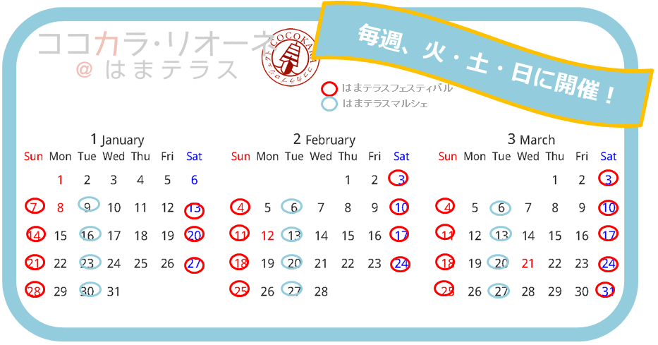 ・はまテラスフェスティバル(マルシェ併催)・・・毎週土・日曜日
